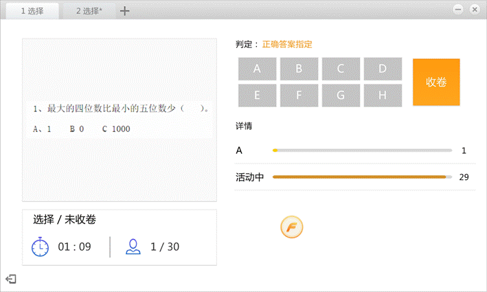 教师在课堂上随时截图即可发起即时互动,即时互动题型的统计呈现如下图所示: