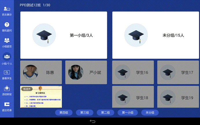 学生表现:多维度呈现本班学生在单次课堂上整体、小组及个人的课堂表现。